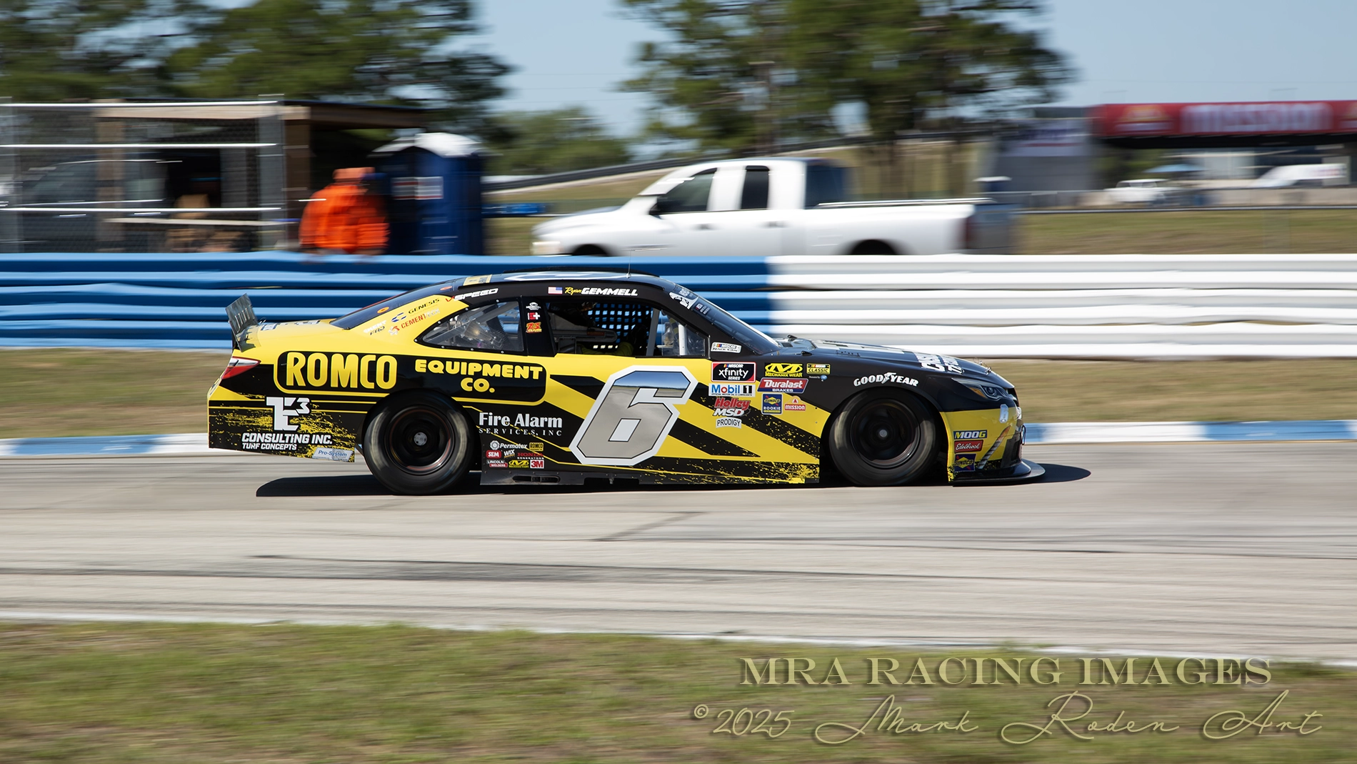 Ryan Gemmell’s #6 yellow and black Camry screamed past with every lap, taking up the ribbon of track turn by turn. Almost 2.5 seconds faster than the next, he not surprisingly produced the fastest lap of the session.